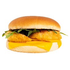 SБулочка, филе хека, сыр чеддер, соус цезарь.